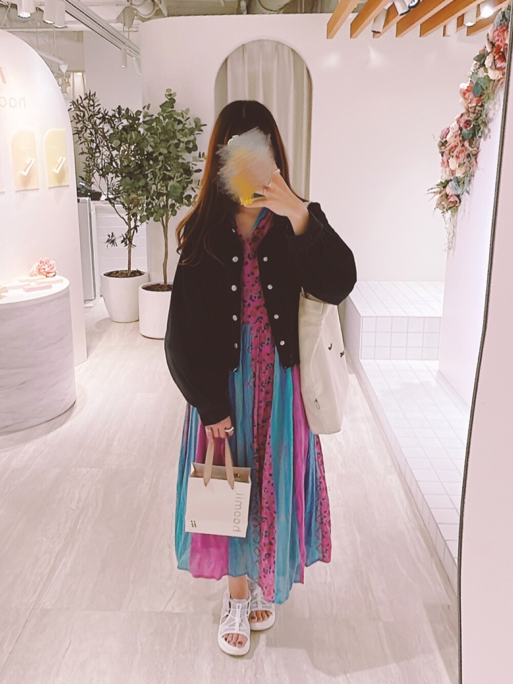 ma✿のワンピース「パッチブロックプリント ワンピース」を使ったコーディネート