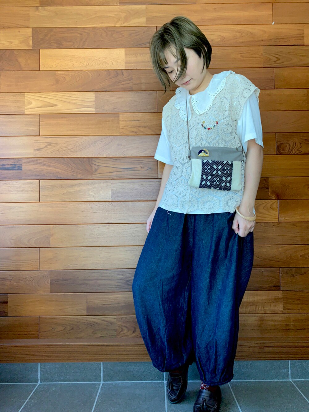 足元から秋. 靴下は靴下ソムリエの さかもとみなこさんのもの. 今日のこぎん刺しアイテム ・サコッシュ こぎん刺しは Instagram @zizinoie で発信しています!