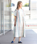 ziziのワンピース「BEAMS BOY / ビッグタータン ボートネック ショートスリーブ ワンピース」を使ったコーディネート