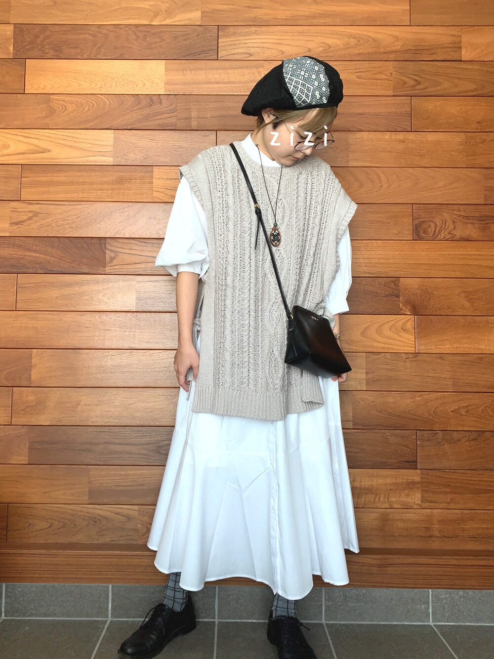 モノトーンコーデ. 今日のこぎん刺しアイテム ・ベレー帽 ・ネックレス こぎん刺しはInstagram @zizinoie で発信中!