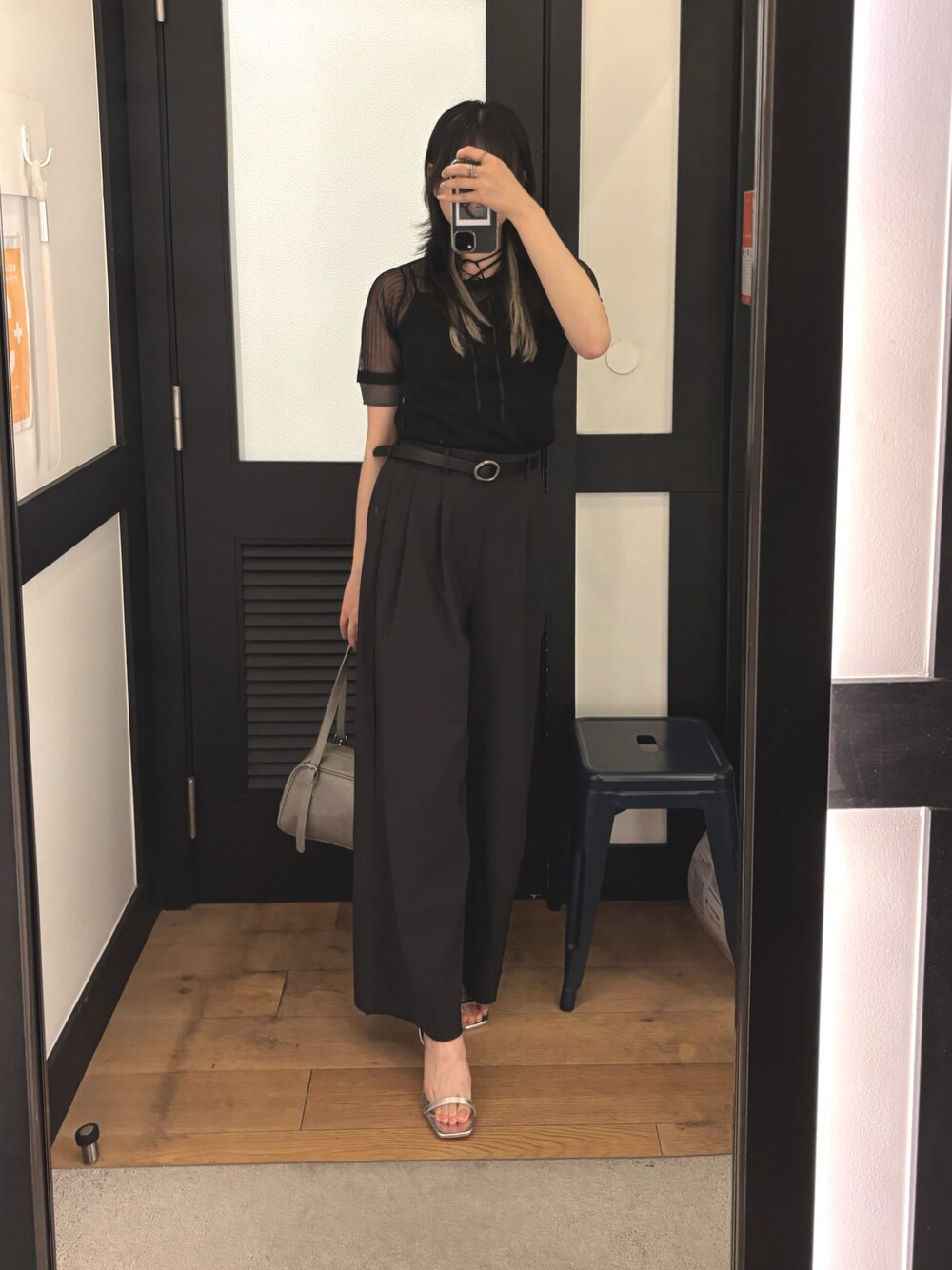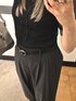 閲覧ありがとうございます🐈⬛ 168cm/骨格ストレート着用です⟡.· ✧ 𝐈𝐭𝐞𝐦𝐬 【tops】 size:F color:ブラック ¥5390 シアー素材の涼やかさを演出できる女性らしいリブトップス。 首回りを美しく見せるネックデザインと、コンパクトなシルエットが女性らしさを引き立てます。 シンプルなデザインですが袖口のラメ感のある配色がアクセントになり、着映えるアイテム。 コンパクトながらも体のラインを拾いすぎない柔らか素材で着心地も◎ 【bottoms】 size:M color:ブラック ¥5390 シンプルで使い勝手の良いレーヨンナイロンタックワイドパンツ。 ウエストの後ろ部分はゴムが使用しストレスフリーな履き心地◎ タック入りで気になる太もも周りをカバーしてくれます。 すっきりとしたウエストデザインでインスタイルもおすすめです。 【bag】 size:F color:グレー ¥5280 どんなコーディネートとも相性抜群のボストンバッグ👜 長財布やペットボトルも収納可能な容量です 床に置いても倒れない自立タイプで サッと手に取ってお出かけしやすいのも嬉しい🤍 【belt】 ¥2750 コーディネートにさりげないニュアンスをプラスしてくれる、シンプルながらも洗練された印象のベルトが登場。 主張しすぎない細身のシルエットと、ニュアンス感のあるバックルデザインがポイント🫧 従来のベルトとは異なり穴がないデザインなので、ウエストにぴったりフィット。 ワンピースやブラウスの上からウエストマークしたり、パンツやスカートのアクセントとしてプラスしたり。 オンオフ問わず、様々なシーンで活躍してくれます。 シンプルなデザインだからこそ、どんなスタイルにも合わせやすいのが魅力。 いつものコーディネートにプラスするだけで、ワンランク上のスタイリングが完成します✧*。 【shoes】 size:L color:シルバー ¥6600 上品な足元に導くストラップヒールサンダル つま先部分はスクエアトゥのデザインで、モードな印象に❕ 程よい高さのヒールでスタイルアップ効果。 デイリーユースから特別な日まで、幅広いシーンで活躍します。