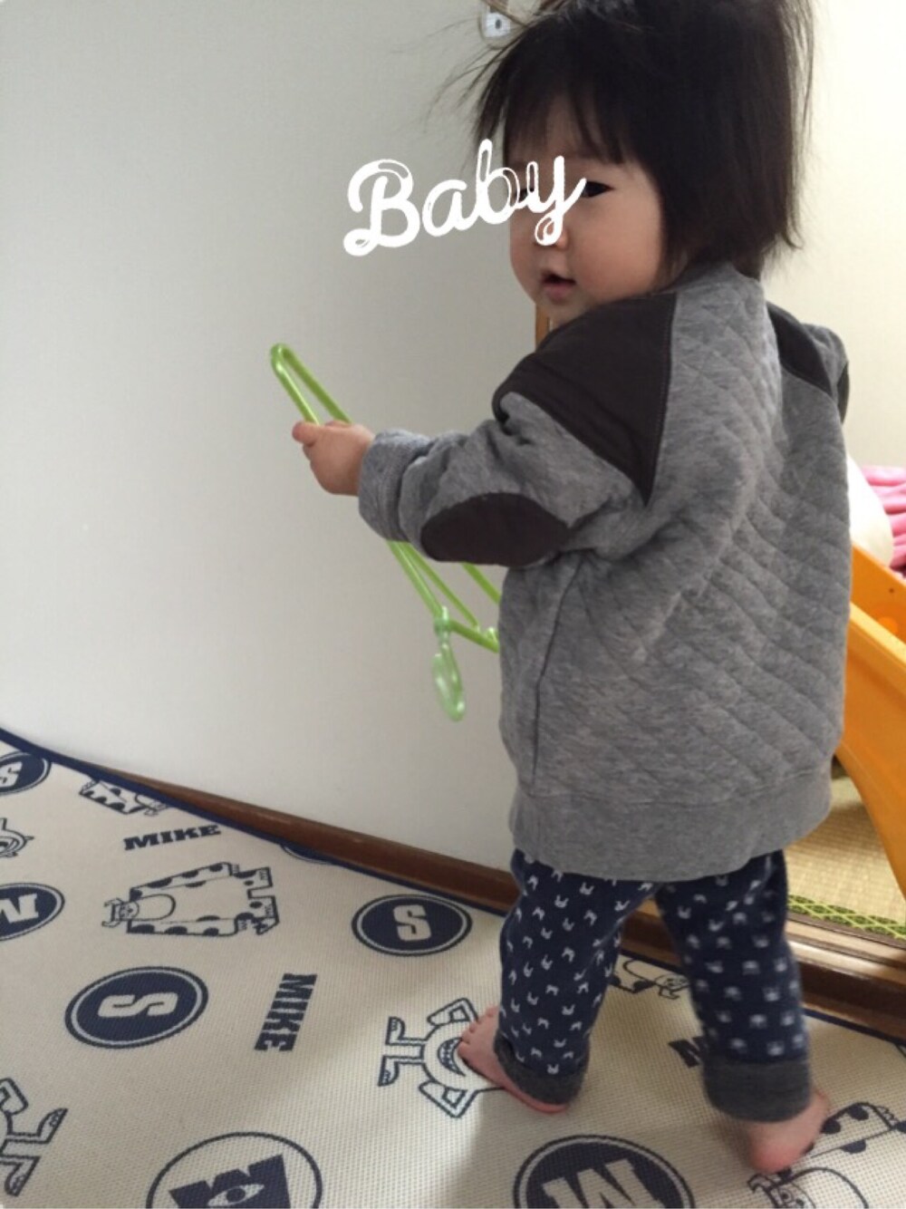 寝起きですぐに遊び出すーどうしてさ、オモチャあるのにハンガーで遊ぶのか謎です(゚∀゚) 寝癖ひどいよー トップスは、coenのもので、100なのでまだまだサイズが大きく、たくさん着れそう♪( ´θ`)ノ