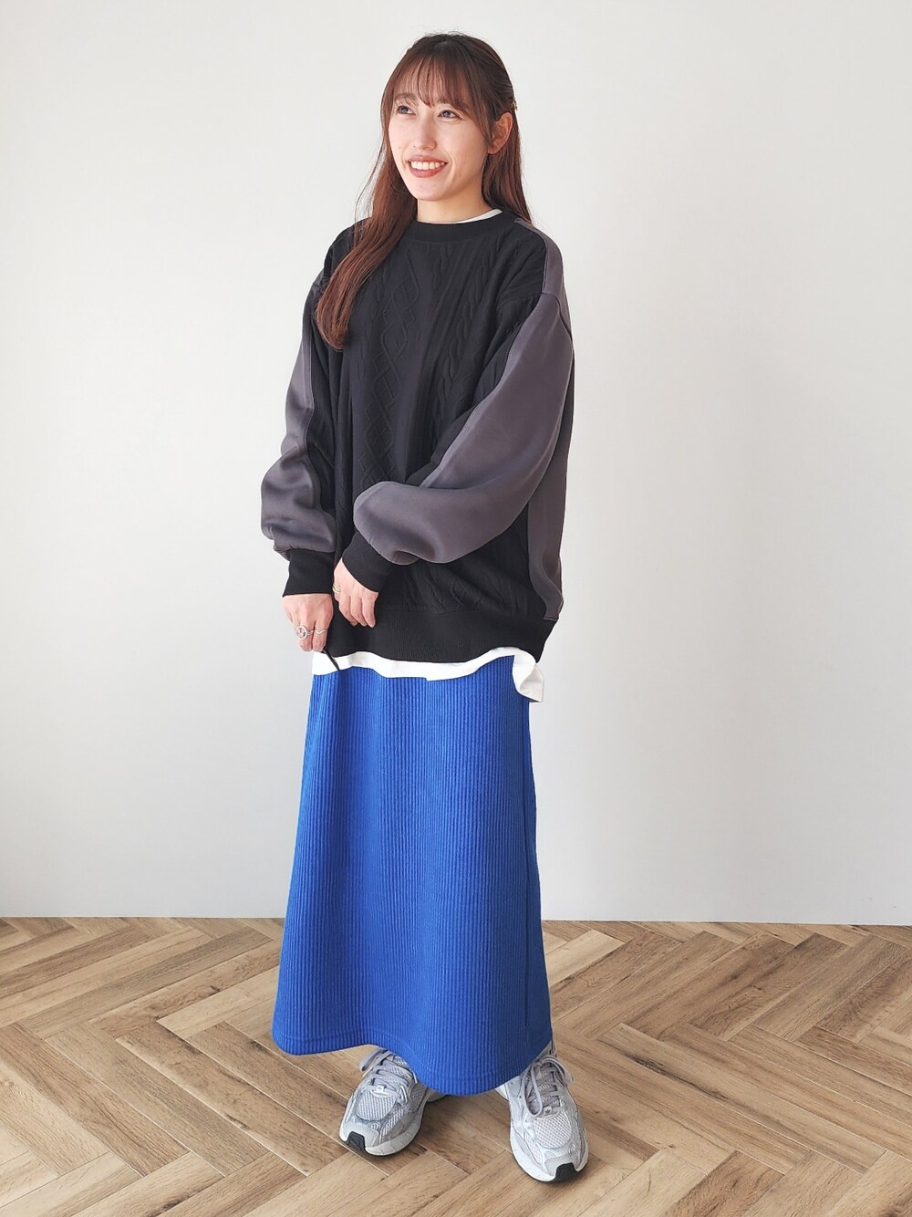 ご覧いただきありがとうございます。 ーーーーーーーーーーーーーーーーーー 【スウェット】 普段着用サイズ:S〜L 今回着用サイズ:M 袖幅もゆったりとしていて、 レイヤードスタイルもしやすいデザインです。 中にタートルネックなどを合わせるのも◎ 【スカート】 普段着用サイズ:S 今回着用サイズ:M 1回折って着用しています。 ウエストも1回折ってぴったりです! ーーーーーーーーーーーーーーーーーーー