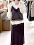 リアルバイの店頭コーデ☺️ 【トップス】 ゆったりだぼっと着れるロンTは今すぐ使えるアイテム。シンプルな素材で少し長めの袖で抜け感の出るシルエット🤍 プラスワンするだけで今年らしさが出るサテンキャミ。インナー次第で雰囲気も変えられます。 【ボトムス】 テロっと落ち感のあるサテンスタートは細見えアイテム。ストレッチも効いていて履き心地🙆♀️丈が選べるので高身長さんでもマキシ丈で履けるのがおすすめポイント。
