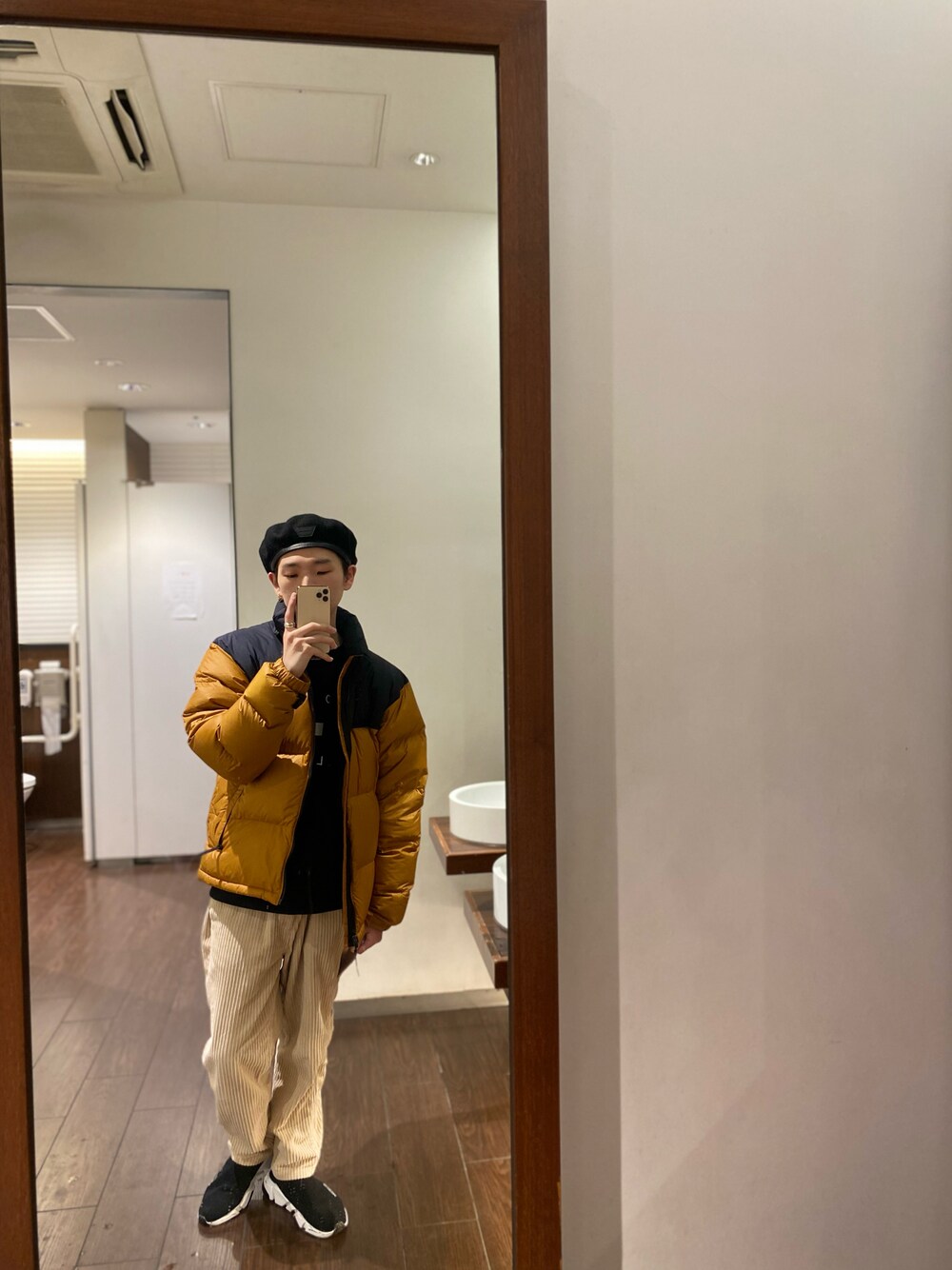 冬コーデ2021🖤🧡 コーデュロイのパンツ TOMMYスエット❤️💙合う👍 冬に欠かせないアイテム🔥ダウン ノースフェイスダウン最強💯