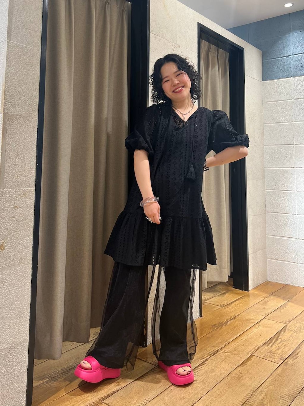 ピンクのサンダルが主役のブラックコーデ🩷 下のアイテムをタッチすると カートに入れ込めます👇 そしてこちらも毎日投稿奮闘中🔥 よかったらフォローお願いします🙇 クセあり着痩せコーデ詰め込んでます 👉
