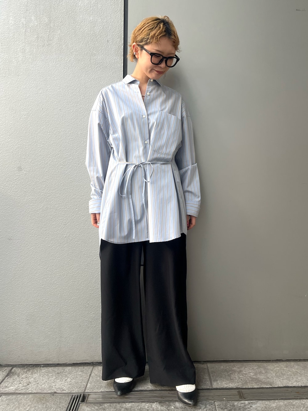 ストライプメンズライクコットンシャツ👕 サイドに紐がついており前後お好みで ウエストマーク出来るデザイン🎶 差がつくオシャレシャツです✨