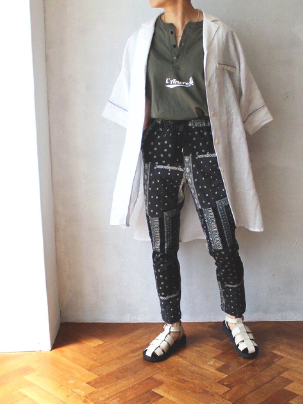 minoriTY-fun LOOKのTシャツ/カットソー「L'Ancre (アンカー)オールドマリンロゴヘンリーTシャツ」を使ったコーディネート