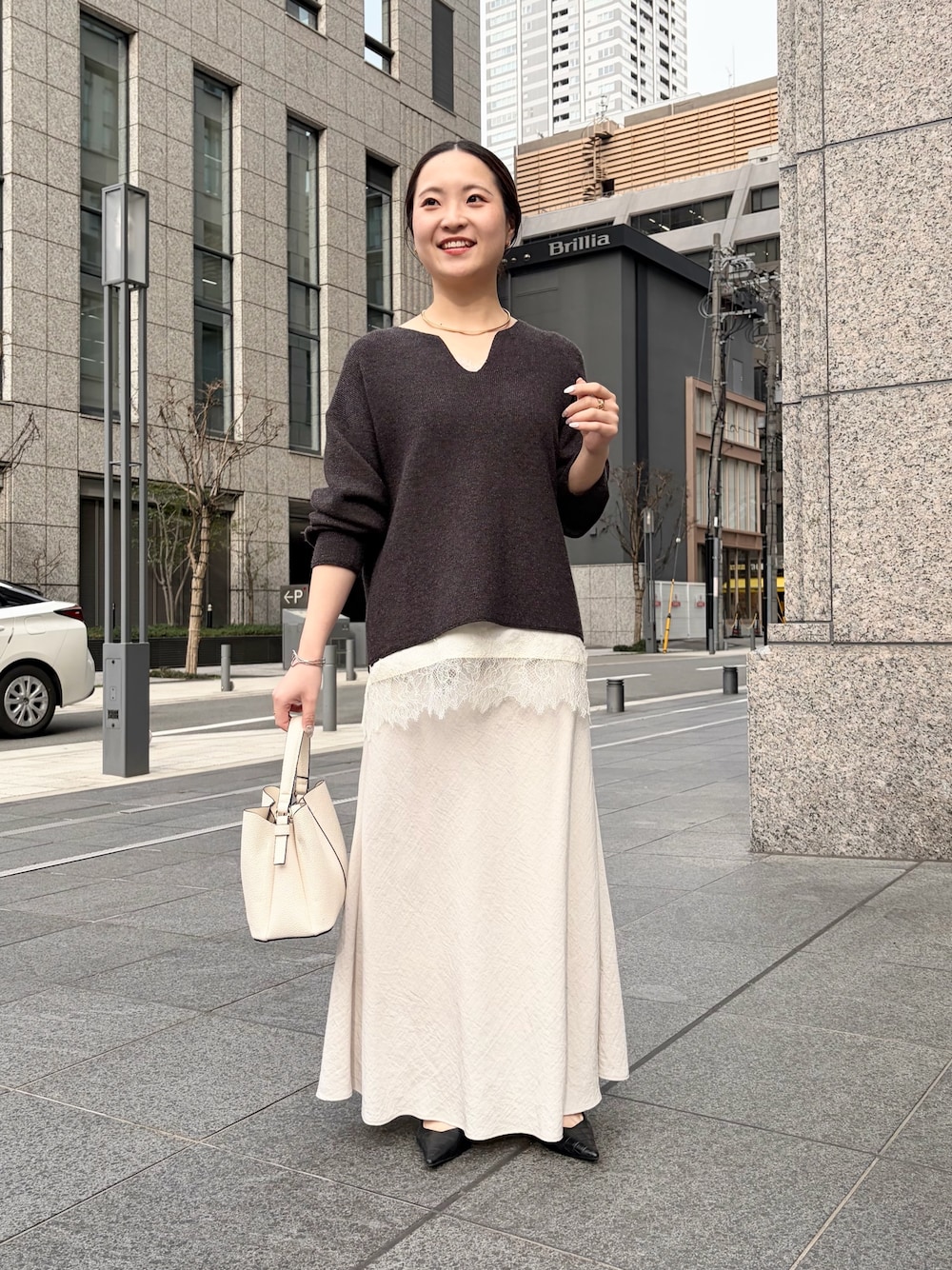 minr666(Jena espace merveilleux)のニット/セーター「【累計8000枚突破/春に着たい】カタアゼ編みVネックニット」を使ったコーディネート