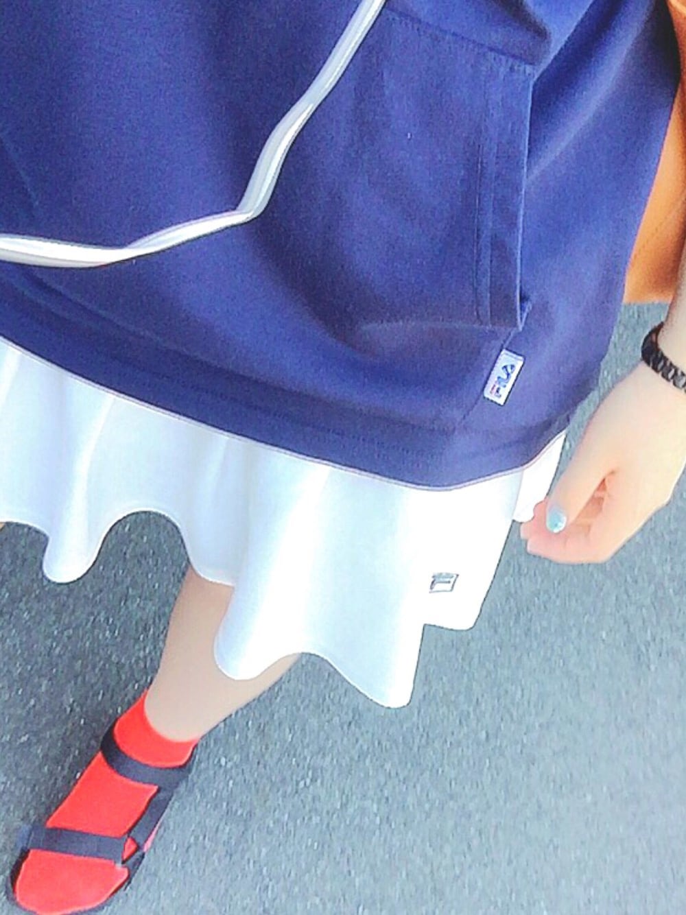 📝 FILAパーカー × FILAスカート = FILAマン 上下ともWEGOさんで購入。 派手ですね。 🌞