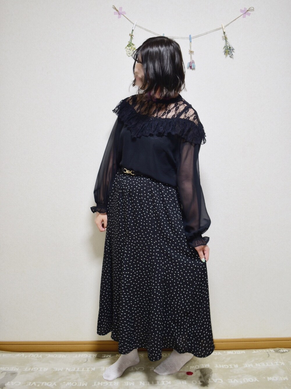 . . . . ご覧頂きありがとうございます.*・゚ . . 今日はブラックでまとめてみました! . . でも、ドットのスカートを用いることで、足元をあえて白をもってきて、暗すぎない印象にしました⌣̈⃝ . . . このトップス、半袖のしたとかにきてもすごく可愛いので愛用しています。 . . . ブラックコーデかわいいですよね˙ᵕ˙⑅ . . . . Instagram ➼ tm__2_1