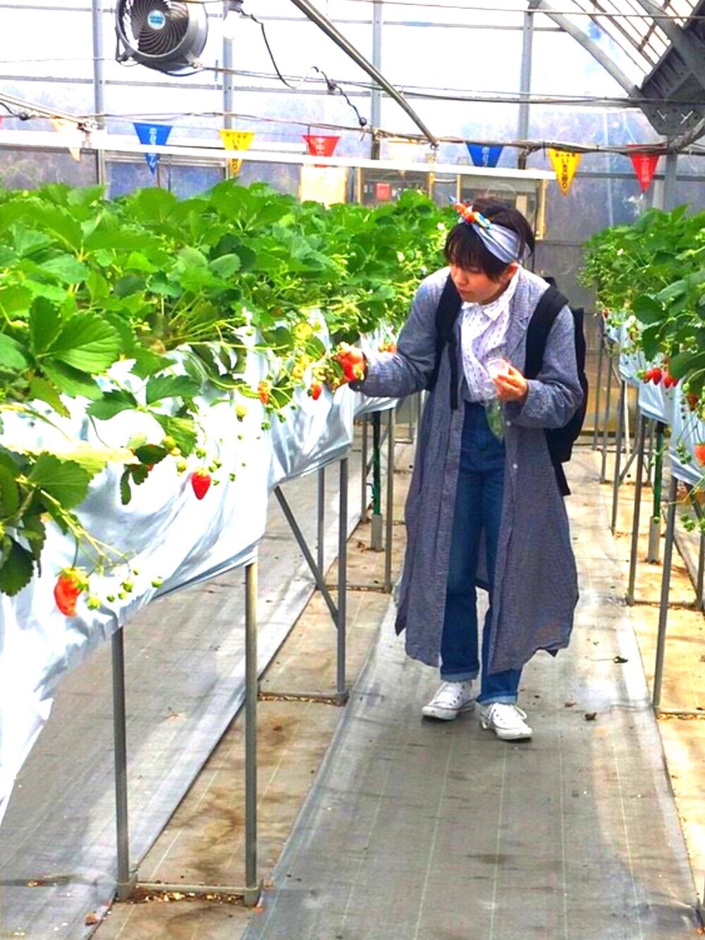 知多の旅❤️ いちご狩り、恋の水神社、ケーキ屋さん、新美南吉記念館、めんたいパーク😍 レンタカー借りていっぱい回れた❤️❤️ ブラウスの柄はちいさいチューリップ柄🌷
