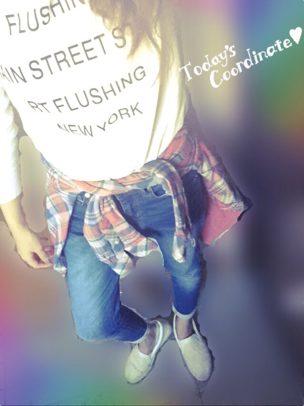 元気コーデ🎵 シャツの裏地がピンクで腰巻きにもってこい😄 なかなか見ない色合い〜 LEPSIMは靴やバッグ、帽子にネックレス…ファッション小物が可愛くて好き♥