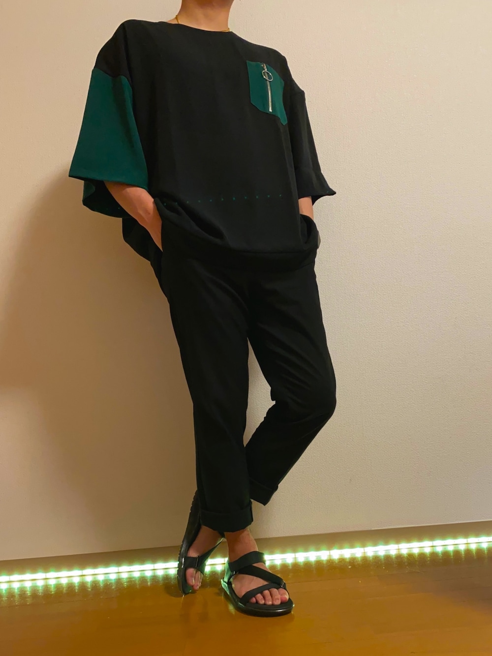 今回はモノトーンのなかに緑を入れてみました🍎🍎🍎 スラックスをロールアップすることで夏らしさを出してみました🤣🤣🤣🤣