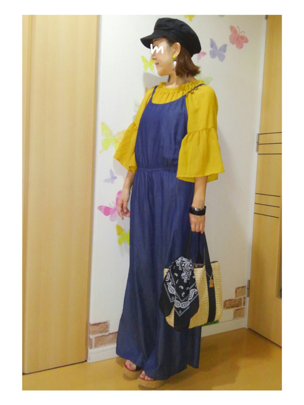 8/23(Wed.) 29.3℃/21.0℃ 晴れ 晴れて夕方からは蒸し暑い北国です☀ 黄色袖フレアトップス×オールインワン ×黒キャスケット&サンダル×夏バッグ 好き過ぎて2回/週は着ているオールインワン❤ これから晩夏は更にヘビロテしそう😆 セールで買ったマスタードイエローのトップスも 秋にかけて使えそう🎵 着回し頑張るぞ✨ ご訪問、いいね♡、save、follow そして、いつも見に来て頂き どうもありがとうございます☺ なかなかお礼に伺えなくてスミマセン🙇💦