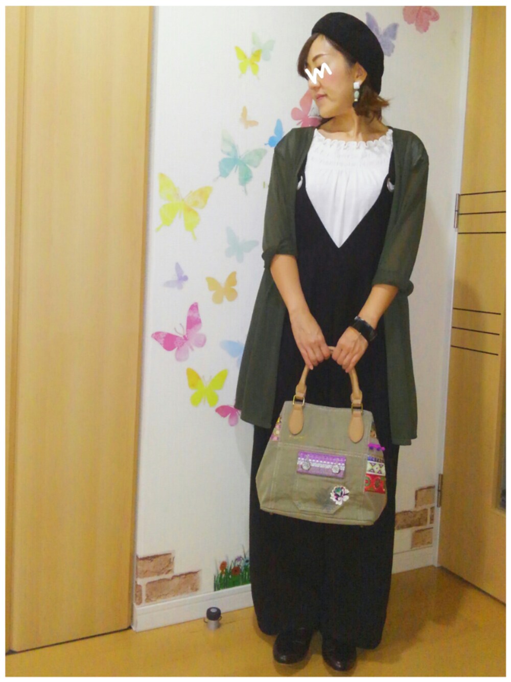 9/5(Tue.) 26.9℃/15.0℃ 晴れ 日中は晴れて日差しが暑かった北国です☀ 白半袖トップス×黒サロペット ×カーキロングカーディガン ×黒ベレー帽&ミュール×カーキバッグ 秋コーデ 今年の秋はカーキ×黒が多くなりそうです🎵 ご訪問、いいね♡、save、follow そして、いつも見に来て頂き どうもありがとうございます☺ なかなかお礼に伺えなくてスミマセン🙇💦