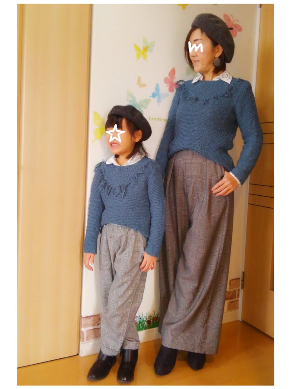 mintoのニット/セーター「フリンジニット 娘:6(116cm)、母:13-14(164cm)☆2015年購入」を使ったコーディネート