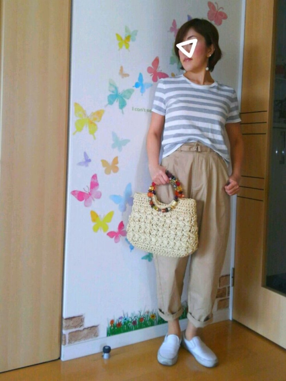 mintoのかごバッグ「2年前に購入☆手持ち部分の大きいビーズがカラフルでお気に入り♡」を使ったコーディネート