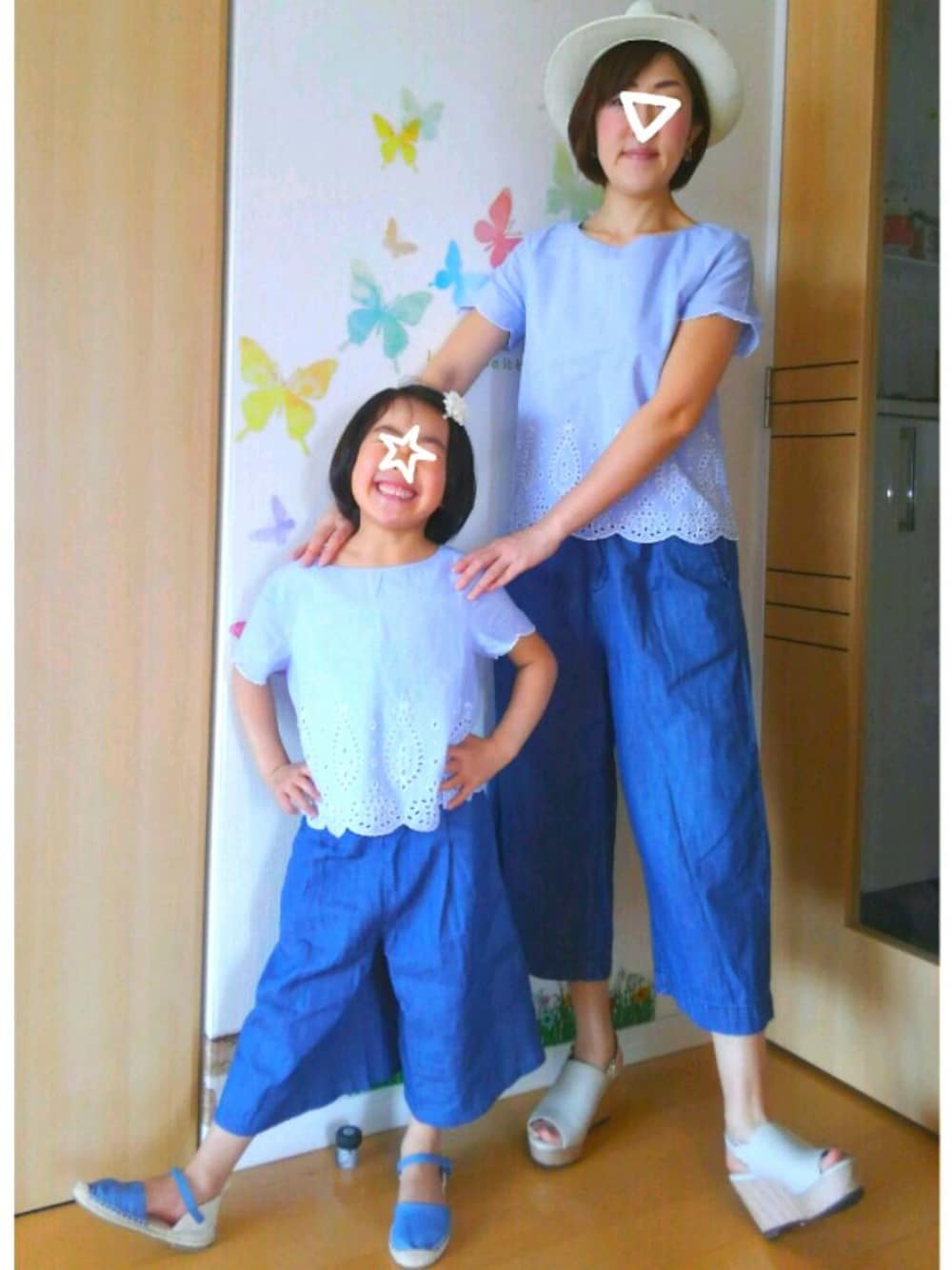 ご訪問、いいね♡、save、follow、コメント どうもありがとうございます‼🙌 とっても嬉しいです❤ 28℃/15℃ 晴れ 今日も引き続き夏日の北国☀ 日差しも暑く半袖で薄着してるとすっかり夏の気分ですが よく考えたら、まだ5月💦 気温と気持ち的に6月の気分でした(笑) さて、本日も親子ーデです🎵 お付き合い宜しくお願いしま〜す🙋 ここ2〜3日、フォロワーさん達のオールネイビーや ブルーグラデのコーデに刺激されて 私達もブルーグラデに挑戦⤴👍 トップスはおソロアイテム🎵 4月末の50%offセール開催時に偶然発見‼ しかも、値下がり価格から更に50%offになってる⤴ 母サイズもある、コレは買わないと‼😁 ってコトで即決購入(笑) 最近、おソロアイテムばかり買ってしまう母です😆 ボトムは母去年ヘビロテのガウチョパンツ❤ (木曜日、ワイパンって書いちゃったけど、ガウチョだった💦 これらの違いがよく分からない(笑)) 娘ボトムはzozoさんで偶然似たアイテムを発見😲 オシャレキッズさん達が履いてたの知ってたから 実は欲しかったアイテム✨ しかもちょっとお安くなってる〜⤴🙌 で、ポチッと👇 オソロコーデ完成〜✨ 日中は暑かったけど 地下や夕方は日が陰ると涼しいからカーデを羽織って 足元、母は白サボ、娘はサンダルに🎵 ポーズテーマは 『ジャンケン列車 part.3』 も〜コレでいいよ〜と娘言うので またもやジャンケン列車しました🚂 何か一言コメント頂けると、とても嬉しいです🎵 《つぶやき》 ・今朝はムダに早起きの娘💧一睡も昼寝せずに遊び倒した結果、19時過ぎに撃沈😪母もつられて先程まで寝落ちしてました💧 ・ライラック祭りではワイン2杯飲めました❤美味しかった〜🍷 ・明日から天気の良い日限定の「ひとりマキシスカート&ワンピフェス」開催予定です🎵雨降らないといいな⤴マキシスカートお持ちの方はゼヒ一緒に履きませんか〜⁉😆 いつも見て下さってありがとうございます☺