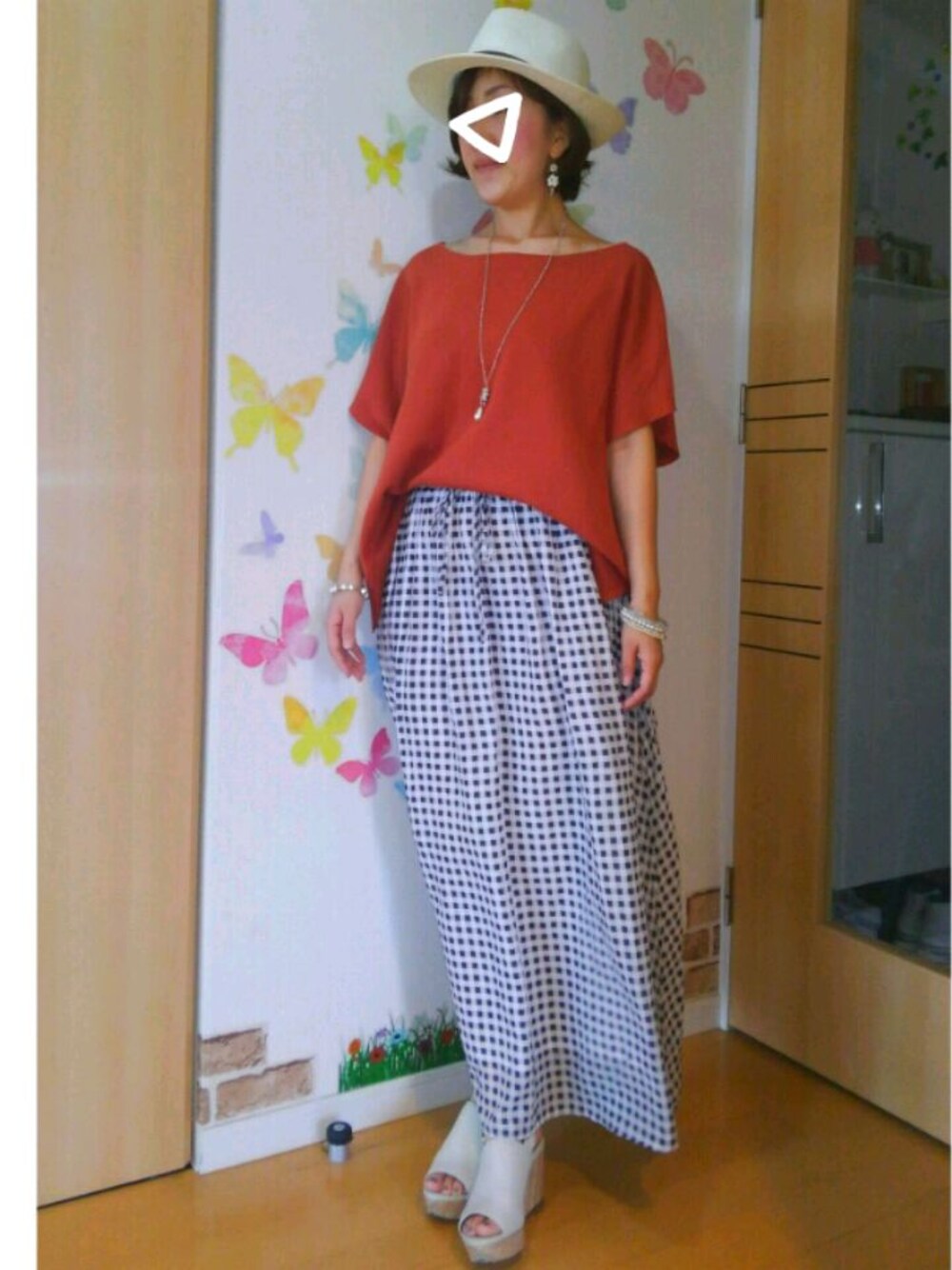 ご訪問、いいね♡、save、follow、コメント どうもありがとうございます‼🙌 とっても嬉しいです❤ 21℃/20℃ 雨 今日は朝から雨の北国でした☔ 宿泊合宿に行った娘は 雨で予定が大幅に変更になったようです😞 今日は「ひとりマキシスカートフェス」です🎵 と言っても、コレは昨日の日中コーデ😆 晴れて暑そうだったのでマキシスカートをチョイス🎵 手持ちで一番涼しいギンガムチェックのマキシスカート❤ コレ、ホント凉しくて履きやすい👍 日中、風はあったけど蒸し暑くて マキシスカートでもベタベタムシムシしてました😥 トップスにはテラコッタニットを着用✨ ギンガムチェックにテラコッタはどうかな?と 初合わせにちょっとドキドキ😆 だ、大丈夫だったかな? ハットとサンダルを白にして少し爽やかにまとめました🙆 何か一言コメント頂けると、とても嬉しいです🎵 《つぶやき》 ・「ひとりサロペフェス」「ひとりマキシスカートフェス」は超ロングラン開催中です😆💕👍 ・娘、園外合宿から帰って来ました🙇1日目は小樽の海でカニ掴みしたらしいです😲小さいのは普通に掴めたとか👍今日は雨降ったので川遊びからプールに変更に🌊楽しかったみたいで良かった🎵 ・母は夕べ0時過ぎまで呑んで0:30帰宅🍺今日も朝から仕事でしたが頑張って働いて来ました〜🙋が、帰宅後、電池が切れてグッタリ😰WEARにも来れず、ようやくコメ返とタイムラインに追いつけそうです😓お返事遅くなってスミマセン🙇💦 いつも見て下さってありがとうございます☺
