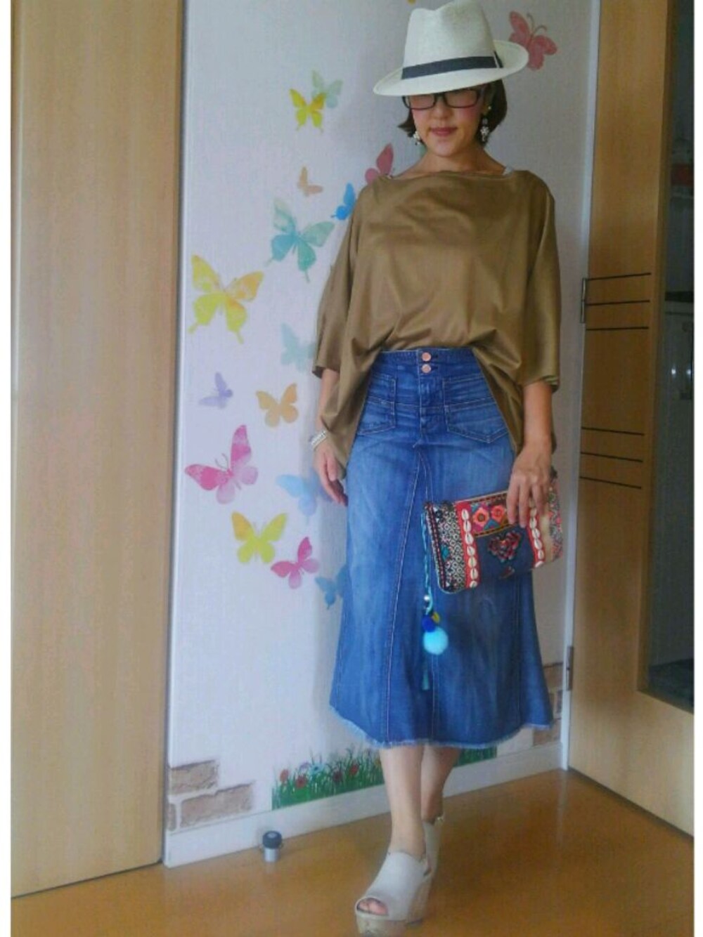 ご訪問、いいね♡、save、follow、コメント どうもありがとうございます‼🙌 とっても嬉しいです❤ 30℃/21℃ 晴れのち曇り 今日も真夏日な北国です☀ 秋コーデしたいけど暑いから間を取って 「残暑で夏コーデざんしょ Part2 秋色ver.」😁笑 秋コーデしたいけど真夏日で暑いので 秋色トップスにデニムマキシスカートに🎵 小物を夏物にして少しだけ爽やかに✨ ハット、サンダル、バッグを変えたら秋もイケそ〜な感じ👍 にしても… 今まで絶対に買わなかった色のトップスを この秋初めて買って挑戦するコトにしました⤴ このコーデも凄くミセスっぽい💦 こ〜ゆ〜大人っぽいコーデは 似合わないだろ〜なと思って今まで敬遠してたスタイル💡 初めて合わせてみたけど意外と悪くない⁉ また、新たな発見です👍 何か一言コメント頂けると、とても嬉しいです🎵 《つぶやき》 ・「ひとりサロペフェス」「ひとりマキシスカートフェス」は超ロングラン開催中です😆💕👍 ・このトップスは色的にも素材的にもデザイン的にも秋に使えそうかな〜と思って夏セールでお安く買ったモノ👛茶系のトップスは初なので、どう着て何を合わせたら良いのかまだ探りながらですが、この秋着回せたらいいな🎵 ・袖や裾がダフッとしてて可愛い❤…んだけど、家事には向かな〜い‼(笑)袖捲っても落ちてくるし洗い物してると濡れてしまう〜💦家事の時対策考えよ〜💡 ・この秋は私の苦手な茶系など大人色コーデに挑戦してみようと思ってます🎵 いつも見て下さってありがとうございます☺