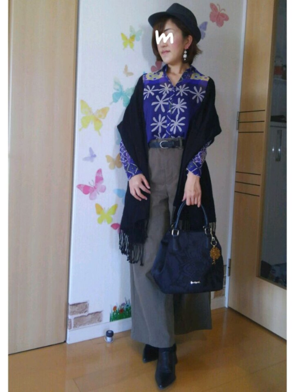 ご訪問、いいね♡、save、コメント、follow どうもありがとうございます🙇 とっても嬉しいです❤ 22℃/13℃ 晴れ 今日もすがすがしい秋晴れ☀ しかし、街路樹の木々が確実に色を変えて 少しずつ落ち始めてる北国です🍁 今年の紅葉は早いのかな〜? そんな本日も秋全開モード🍁 気に入って買ったけど カジュアルがいいのか キレイ目に合わせたらいいのか分からず 暫く眺める日々だった派手柄透け透けシャツ✨ そろそろ着たいな〜と思って 今日は思い切ってワイドパンツと ポインテッドトゥのサンダルに合わせ シャツだけじゃ朝寒過ぎて出勤出来ないので 昨日に引き続き クローゼットから掘り出したストールを巻いて キレイめカジュアルに… まとめたつもりです😆 ストールやスカーフが好きで色々持ってるクセに どうやって使ったらいいのか分からず タンスの肥やしにしてしまうワタクシ💧 今年の秋は少し巻物使いのテクを磨きたいな🎵 テクニックお持ちの方、伝授して下さると嬉し〜で〜す🙋 何か一言コメント頂けると、とても嬉しいです❤ 《つぶやき》 ・「ひとりサロペフェス」「ひとりマキシスカートフェス」は超ロングラン開催中です🎵 ・黒ストールは約10年前に購入👛実は色違いでアイボリーも持ってたりします😅気に入ると色ち買いするクセあり(笑) ・昨夜、鼻詰まりが酷く点鼻薬を使っても全然鼻通らなくて、仕舞には横になると気管も狭くなってる気がしてきて呼吸困難で夜眠れそうもなくてパニックになりそ〜でした😭何とか眠れて今日も日中は落ち着くのに夜になると詰まり出す両鼻😫も〜苦しくて辛すぎる😭風邪なのかアレルギーなのか何なのか分からないのが約10日位続いてて体ダルいです😩 ・明日は祝日なのに夫不在😵娘と2人で過ごす休みは長いな〜😰何しよ〜🙍 いつも見て下さり、ありがとうございます☺
