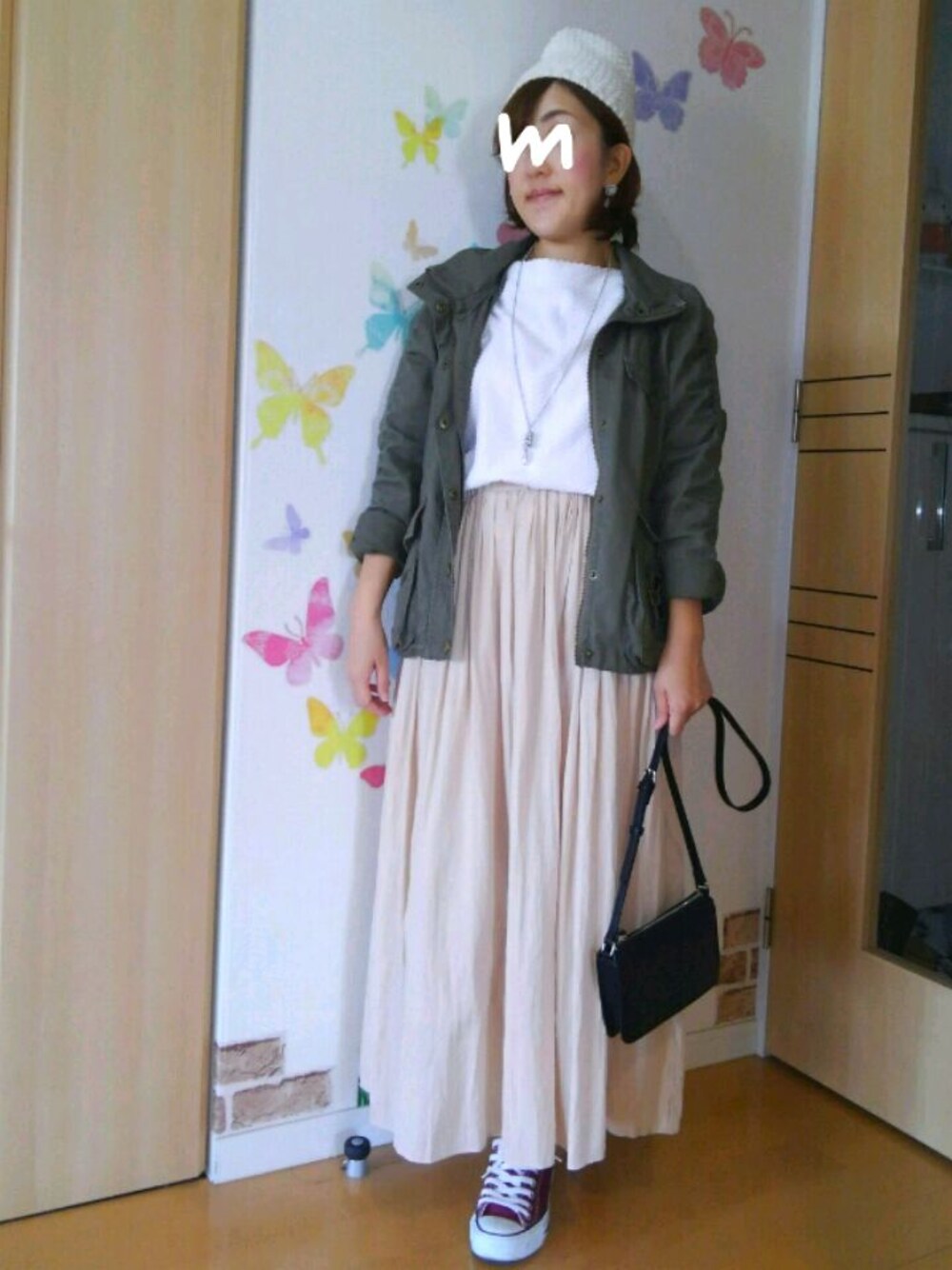 ご訪問、いいね♡、save、コメント、follow どうもありがとうございます🙇 とっても嬉しいです❤ 25.8℃/18℃ 晴れ 今日も朝から晴れて気温が高めな北国です☀ 8月以来、久し振りの夏日😲 明日も晴れて暑くなるそ〜です👍 気温的にも日差し的にも アウターなしでも出勤出来そうな朝⏰ でも 風邪引きなのでアウターはしっかり着て出掛けました💡 トップスには白ワッフルの7分袖に ミリタリージャケットを羽織り ゆるっと楽にベージュのマキシスカートを履きました🎵 色合わせ的に夏っぽいよなぁと思ってたので 今日の気温にちょうどピッタリ👍 今日逃したらきっと着るコトは無かった だろうコーデなので着れて良かった🎵 足元は秋色コンバースで少しだけ秋コーデ寄りに❤ リアル通勤時はニット帽だと暑いのでハットを被りました🎩 何か一言コメント頂けると、とても嬉しいです❤ 《つぶやき》 ・「ひとりサロペフェス」「ひとりマキシスカートフェス」は超ロングラン開催中です🎵 ・皆様、温かいコメントをありがとうございます🙇ご心配お掛けしてスミマセン😂土日ゆっくり過ごし昨夜も早くに寝たので少しだけ楽になってる気がします😷今日は勤務で休む訳にはいかなかったので出勤して来ました😅動き回るとまだダルさがあるのですが、そうも言ってられないので普通に仕事をこなし帰宅して家事してます😵ダルさはありますが夜は鼻詰まりも少し緩和されて楽に呼吸が出来る様になったのでだいぶ楽です😃こじらせた分、治るまで時間は掛かりそうですが、なるべく早く元気になりたいと思いま〜す🙋復活の暁には皆様の所にもゆっくり伺いたいと思ってます😆❤これからも宜しくお願いします😂 ・明日は娘、保育園で運動会の総練習🏃またもや早起きしてお弁当作りです😅風邪引きで早起きはツラいけど頑張る〜😭💪 いつも見て下さり、ありがとうございます☺