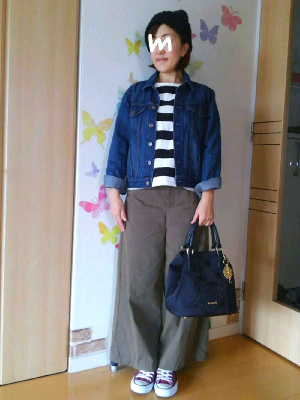 ご訪問、いいね♡、save、コメント、follow どうもありがとうございます🙇 とっても嬉しいです❤ 22.5℃/9℃ 晴れ 今日はすがすがしい秋晴れの北国でした☀ コーデは昨日のモノ 昨日は最高気温も19℃と低めでした 楽なワイドパンツに合わせたのは 合わせてた様で合わせてなかったボーダーT👕 20℃切って肌寒いのでアウターにデニジャケを羽織って💡 足元も楽に歩ける様に秋色コンバースを履いて👟 簡単楽ちん病院受診コーデです😷 何か一言コメント頂けると、とても嬉しいです❤ 《つぶやき》 ・「ひとりサロペフェス」「ひとりマキシスカートフェス」は超ロングラン開催中です🎵 ・皆様、ご心配お掛けしてスミマセン🙇お気遣いありがとうございます😂寝起きから咳が止まらず苦しいので昨日の朝一受診して来ました😷鼻水が出始めてからかれこれ4週間😩薬飲んでも一向に良くならないどころか、咳が悪化してるので血液検査とマイコプラズマの検査もして貰いました。マイコプラズマはマイナス。そして血液検査も白血球も炎症反応も異常ナシ😲じゃあ、一体この咳は何なの〜‼😭季節の変わり目で気道が過敏になってるのカモしれない…とのコト😞ホントにそれだけ?吸入と内服で様子を見ましょうと。さて、良くなるといいんだけど😵仕事もお休み貰ったので1日おとなしく寝て過ごしてました😪そのお陰か少し咳は楽になったのですが、動くとまだ咳き込みます😷今日は元々休みを取っていたので朝から食材の買物に行きお弁当の作り置き出来る物を作り、下ごしらえをしました🍱つ、疲れた💦明日はいつもよりかなり早起きでお弁当完成予定⏰頑張ります‼💪 いつも見て下さり、ありがとうございます☺