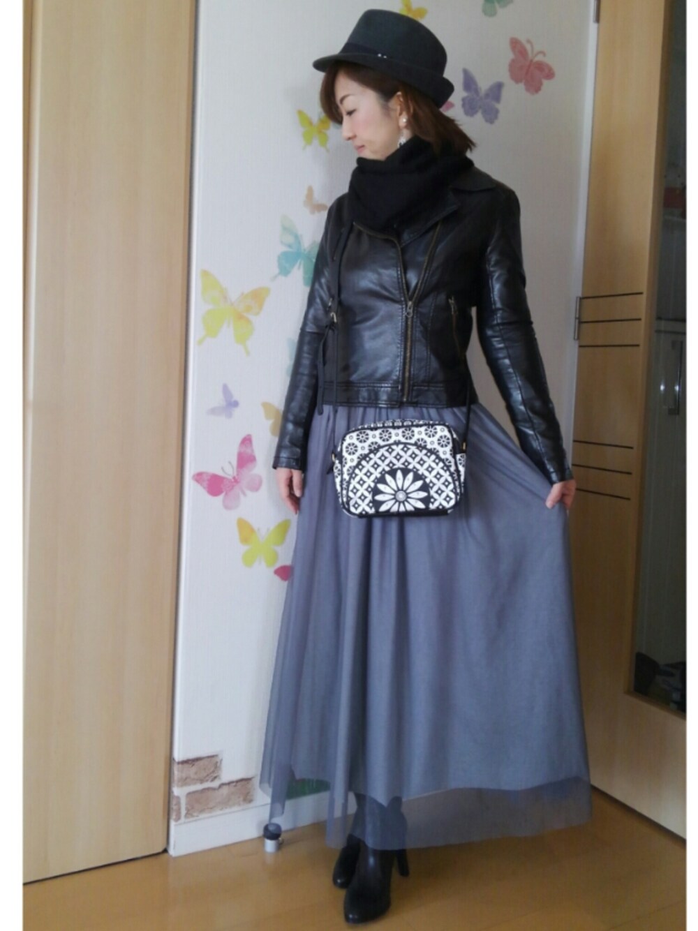 ご訪問、いいね♡、save、コメント、follow どうもありがとうございます🙇 とっても嬉しいです❤ 6℃/4℃ 曇り 風が強過ぎて体感気温がかなり低く感じた北国です☁ この寒さ、な〜に〜っ‼😱 本日は週末ですが 本日は母美容デーのため娘は保育園へ 親子ーデ☆は明日までお休みです🙇 『冬コート着たいけど街中に行くからライダースを着て』 のコーデ✨ ライダースに初合わせのグレーチュールスカート🎵 トップスは今年流行りの袖ボリュームニット😆 可愛くてお値段は少々高めだったけど購入を👛 グレーのワントーンコーデに挑戦です👍 ライダースを着て防寒に黒マフラーを⤴ チェックマフラーにしようか迷ったけど カバンを柄物にするのでマフラーは単色に💡 そしてチュールスカートには初合わせのミドルブーツ❤ このブーツ、ホント優秀✨ 買って良かった👍 ホントは寒くて冬コート着ようかと思ったけど 街中出ると暑いし まだ冬コート着てる人も観光客位しか見掛けず💧 雪降るまで冬コートは見送りかしら〜⁉ ライダース、中にニット着てるからかなりパッツパツ💧 あら、そして気付けば珍しくモノトーン💡 秋冬はオリジナルでもモノトーンたびたび登場の予感⤴ 何か一言コメント頂けると、とても嬉しいです❤ 《つぶやき》 ・「ひとりサロペフェス」「ひとりマキシスカートフェス」は超ロングラン開催中です🎵 ・母、本日は超久し振りに美容室へ💇9月中から行きたかったから、かなり髪も傷んで色も抜けてパサパサ💧寒くなるのであまり短くもしたくなく、どんな感じにしようか迷って決めたのはドクターXの「大門末知子」ドラマ見てて、髪型いいなぁと🎵女優さんやモデルさんの髪型をマネるコトは無いから、初の試み⤴ボブベースで扱いやすそ〜👍色も秋なので少し落ち着いた色味にして貰いました💇 ・今夜は日本シリーズ⚾もうハラハラしっぱなし⤴日ハム、勝って今夜優勝決めて〜‼ いつも見て下さり、ありがとうございます☺