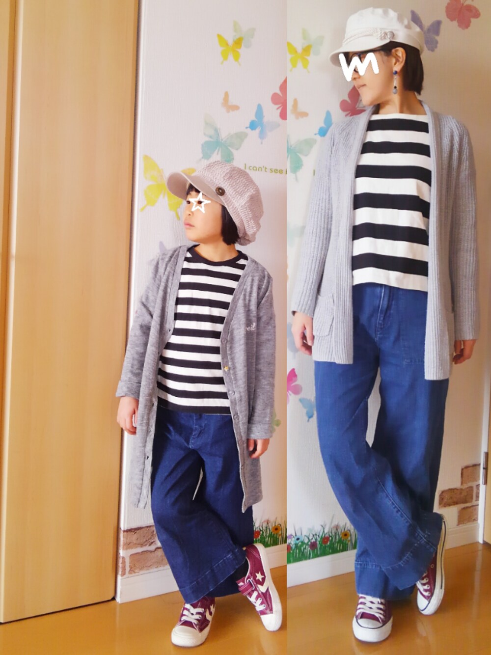 ご訪問、いいね♡、save、コメント、follow どうもありがとうございます🙌 とっても嬉しいです❤ 8.7℃/-1.9℃ 晴れ 週末の春の陽気で積もった雪もすっかり溶けた北国です☀ 昨日は休日親子ーデ☆ お付き合い宜しくお願いします🙋 ボーダー×グレーロングカーデ×デニムワイドパンツ ×コンバース×キャスケット 合わせてたようで着てなかったコーデ💡 この組み合わせ、してなかったの意外でした😅 娘キャスケットは母の昔被ってたヤツをお下がり💡 母のは今春30%OFFだったので新調しました✨ 何か一言コメント頂けると、とても嬉しいです❤ 《つぶやき》 ・今日UPしたコーデは昨日のモノです👕 ・金曜は雪で寒くて防寒防水テキトーコーデしかしなかった&土曜は娘とケンカしておソロコーデしなかった&日曜は入学準備でバタバタしていたので、この3日間はWEAR開けてませんでした💦実はこの時も娘機嫌悪く一緒の撮影は拒否😰何とか持ち上げてソロ撮影に📷最近時々イヤがるから親子ーデ撮影もそろそろ厳しいのカナ〜…😭娘のテンションに合わせてやってこうと思います😵 いつも見て下さり、ありがとうございます☺