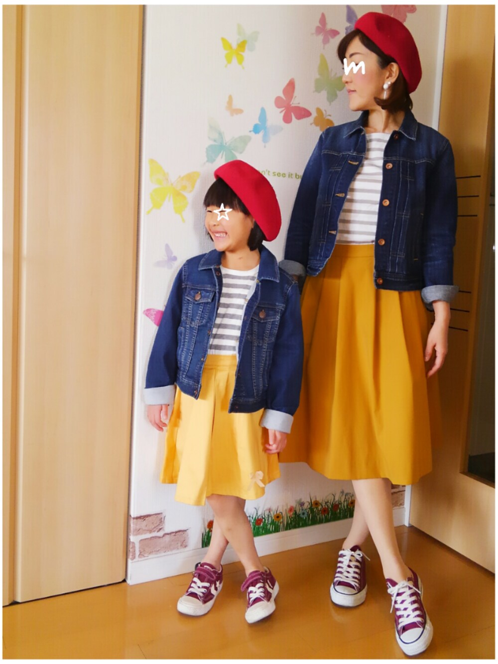 ご訪問、いいね♡、save、コメント、follow どうもありがとうございます🙌 とっても嬉しいです❤ 16.3℃/6.5℃ 晴れ 朝から気持ち良い青空の北国です☀ 本日は週末親子ーデ☆ お付き合い宜しくお願いします🙋 グレーボーダー×黄色スカート ×赤コンバース×赤ベレー帽×デニムジャケット 天気の良さにつられてこのコーデで出掛けたら 風が吹くと寒くて まだアウター着なきゃダメだ〜と思いました😅 あらら… ジャイ子みたいなコーデになっちゃったけど 「♯ベルイエロー」に参加です😁💦 何か一言コメント頂けると、とても嬉しいです❤ 《つぶやき》 ・やっと開花宣言出ました🌸近所の早咲きの八重桜は満開通り越して半分葉桜になってました💦桜が咲くと、やっと春が来たな〜と思う北国人です🌸 いつも見て下さり、ありがとうございます☺ なかなかお礼に伺えなくてスミマセン🙇💦
