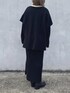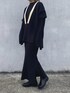 ブラックコーデです〜。 中に着ているニットワンピースはストレートのシルエットで綺麗です。 ベストの方は深Vのチルデンネックがポイントで、前後差がある着丈は後ろの長さがお尻も隠れる丈なので色んな服にも合わせやすいおすすめアイテムです。