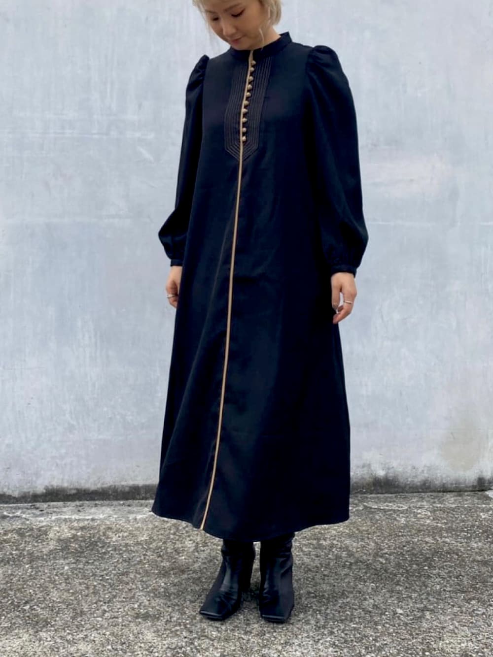 mintpinkのワンピース「配色パイピングバックレースアップワンピース」を使ったコーディネート
