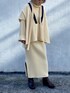 オールホワイトのコーデを着てみました。 リブニットワンピースはウエストにベルトループがあってベルトもできるし、一緒に付いているニットベルトはマフラーでも使えます。 チルデンベストは長めの丈でサイドスリットも入って可愛いし、トップスやワンピースにも合わせやすいのでおすすめアイテムです。