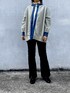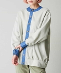今年トレンドのカレッジロゴ刺繍のスウェットにスパン入りで気軽く合わせられるデニムパンツをコーディネートしました。 デニム生地を襟と袖にドッキングしているスウェットは、アンチックゴールドのスナップボタンが付いていて前後2wayにも着れます。