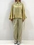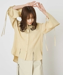 2サイズのギンガムチェックがドッキングになっているブラウスにラップパンツの合わせです。 ブラウスは、前裾スリットと袖スリット&紐が可愛いし、パンツはラップスタイルでポケットも取り外しできる仕様になってます。 イエロートンのコーディネートです。
