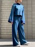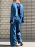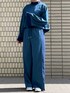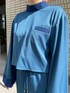 シアー素材がドッキングになっているセットアップです。 トップスはバック空きレースアップで、Aライン袖が可愛いし、ボトムはストレートシルエットでウエストが全ゴムになって楽です〜。
