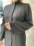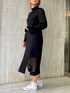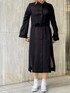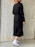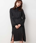 シフォンドッキングのワンピースで、ハイネック襟や裾スリットなどが可愛いアイテムです。 裾や袖の内側の透け感もいいし、共地ベルトも付いているのでウエストが細く見えます〜