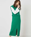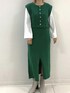 今年トレンド色のグリーンのニットワンピースです。 袖の布帛ドッキングがレイヤードになって、シルバーのボタンが可愛いです。 センタースリットが丁度膝ぐらいでデザインポイントにもなるし、歩きやすいです〜。