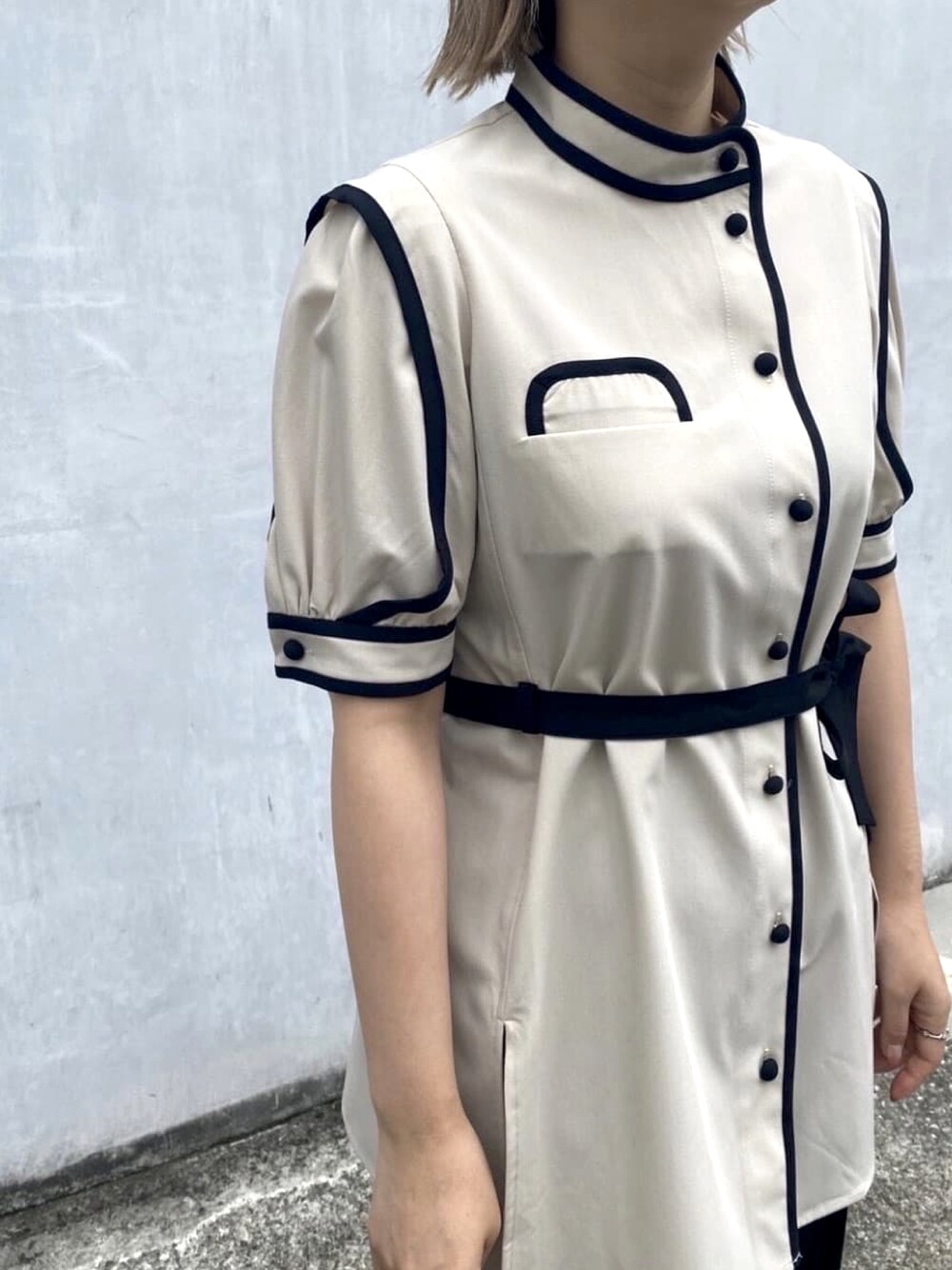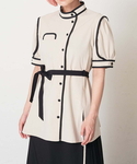 mintpinkのシャツ/ブラウス「配色パイピングレイヤード袖ブラウス」を使ったコーディネート