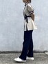 バイカラーのパイピングが可愛いブラウスとパンツです。 ブラウスはレイヤードになっている袖や裾スリットなどが特徴で、ウエストベルトでウエストが細く見えます。 パンツはストレートシルエットで裾にちょびっとスリットが入って可愛いです。