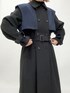 バイカラーケープフェイクウールロングコートです。 取り外しが可能な配色のケープが特徴で、 ケープなしに着たらシンプルで着回しがいいです。 袖もゆったりで寒くなり時期には、ニットも着てもいいです! 袖とウエストの共地ベルトも楽しめるのでお勧めです。