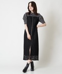 レースドッキングのナローワンピです。 ボリュームのスリーブや センターフロントの金属ファスナーが可愛いです。セレモニーやデート、女子会におすすめアイテムです。