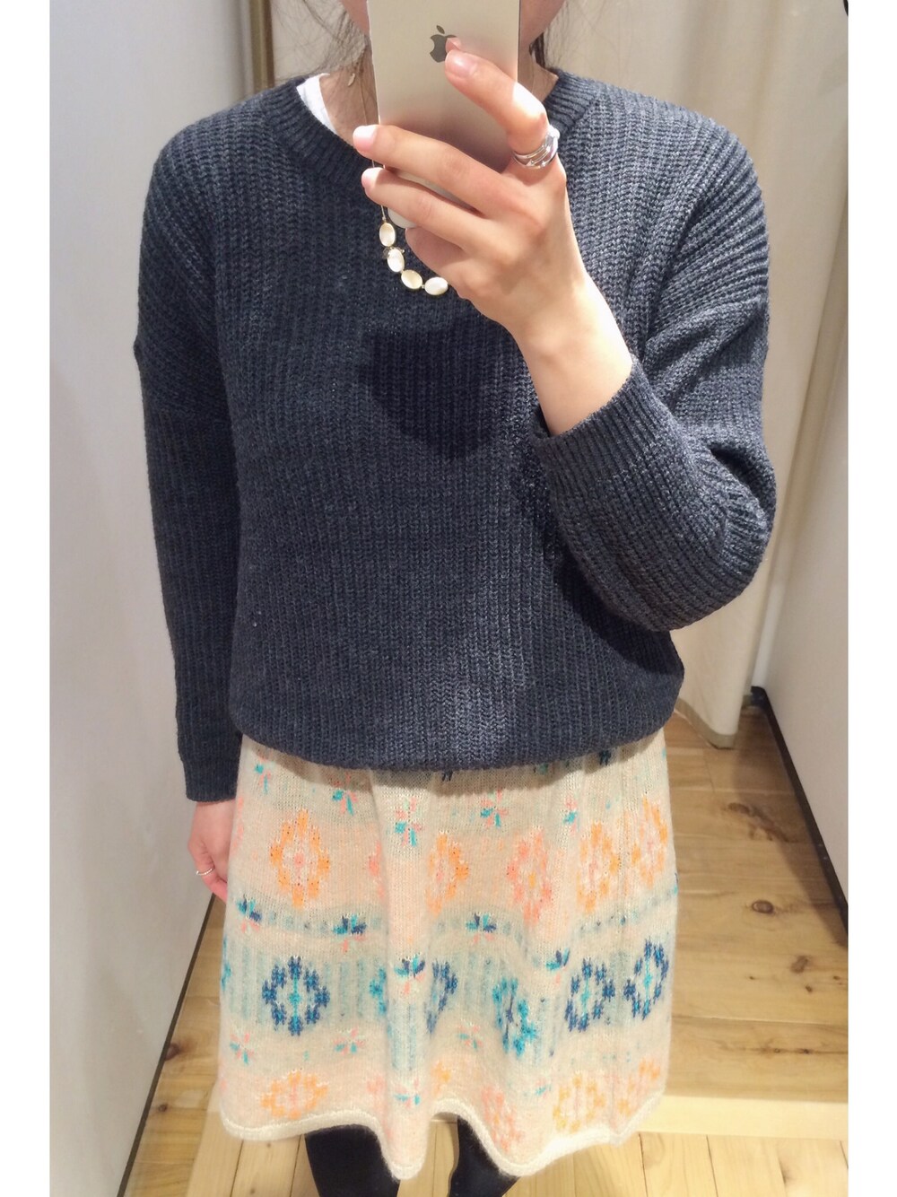 意味のない柄物が気になってたとき偶然発見したスカート☆ ニット素材ですが、女子らしいけどカジュアルな〜 お洋服のお陰でニッコリ笑いたくなる気分になった日♫