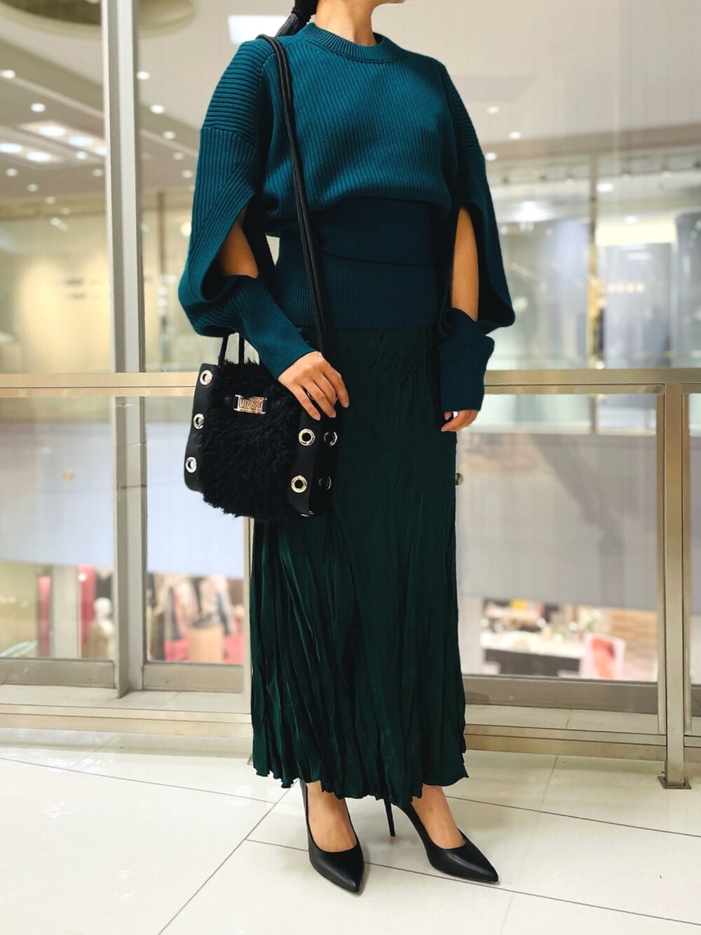 すっかり秋のコーディネートです🍁 今年はこのスカートがおすすめです!! ウエストはゴムで楽ちんで 程よい光沢と、ドレープ感も素敵✨ カラー展開もたくさんあるので お好きな一色見つけてください😆