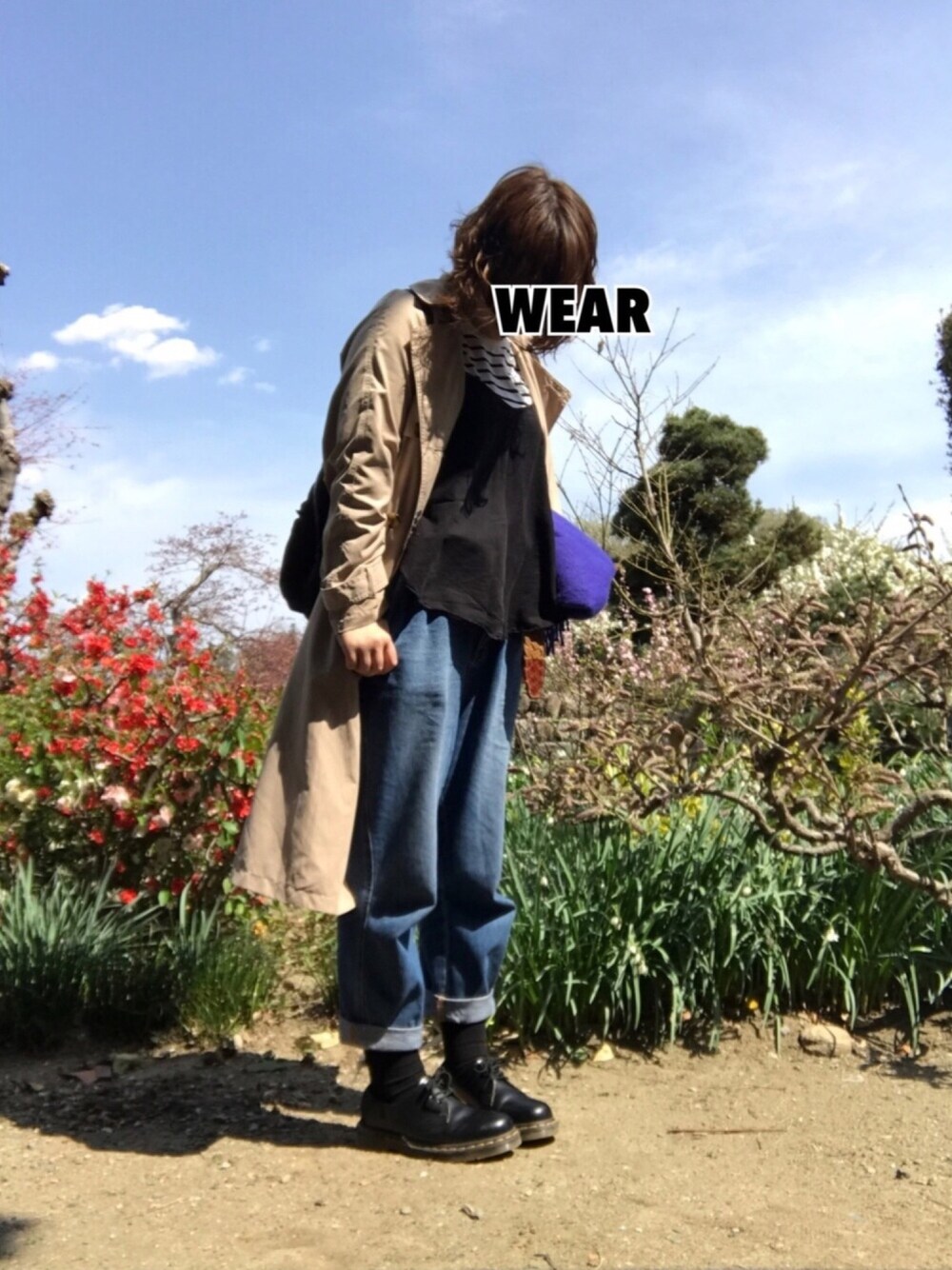 17/04/16 お花見に行って来ました! 今年はもう行けないかも…って思ってたんだけど、車で1時間ちょいの山にまだ見頃の桜があるとテレビで見て行って来ました♡ めっちゃ混んでたww でも桜と菜の花と芝桜が見事に咲いててキレイでした!🌸 夏日で暑かったー!半袖で良かったぐらい暑くてこれ撮った後すぐトレンチコートは脱ぎました😅 でも桜を見に行った所は山だったので少し涼しくて着ててちょうど良いぐらい! でもストールは全然必要なかったな〜💦 靴下は実は後ろにリボンが付いてて私の柄じゃないけど、なんか可愛くて買っちゃいましたww マーチンと合わせたら甘くなり過ぎずいい感じかな✨ (自己満ww)