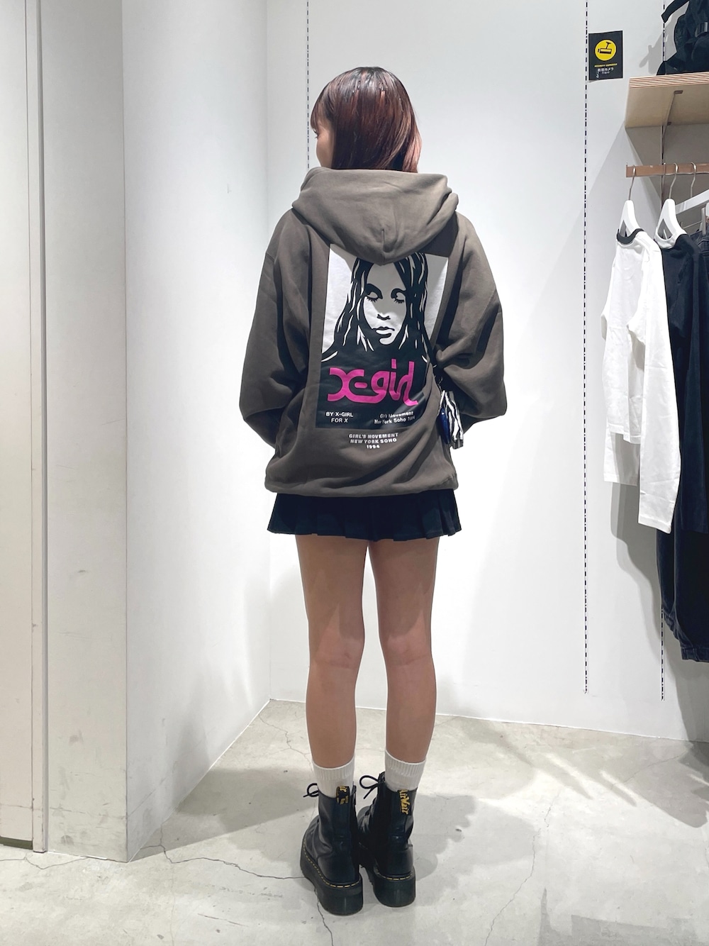 みお(XLARGE/X-girlルミネエスト新宿(X-girl))のパーカー「X-girl FACE POSTER SWEAT HOODIE」を使ったコーディネート