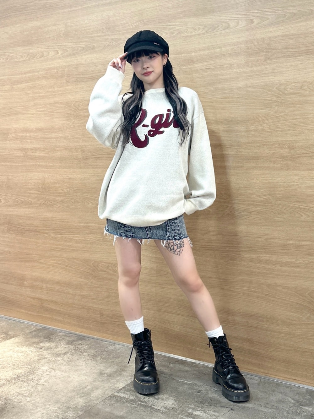 みお(XLARGE/X-girlルミネエスト新宿(X-girl))のニット/セーター「LOGO JACQUARD KNIT TOP」を使ったコーディネート