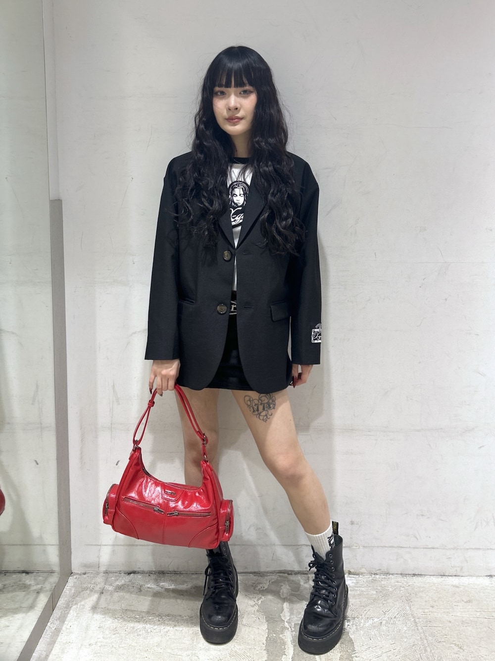 みお(XLARGE/X-girlルミネエスト新宿(X-girl))のショルダーバッグ「DOUBLE ZIP FAUX LEATHER BAG」を使ったコーディネート