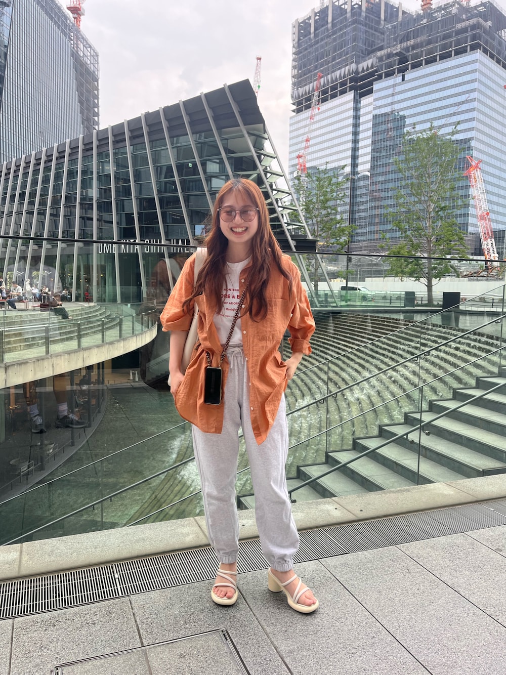 ゆるっと楽ちんコーデ スエットとヒールの合わせを雑誌で見て真似してみた ゆるっとコーデにしたいけどしっかりコーデ組んでる風に見せたいときの欲張りコーデ シアーのシャッツとタンクトップの合わせが今の気温の時期にぴったり シャッツの色とロゴの色を合わせると統一感が出るし、口と鞄の色を合わせるとコーデ全体のまとまり感が簡単に出しやすいからおすすめ このカスタネのヒールは身長盛れるのにつま先の部分が厚底になってるから歩きやすさ抜群